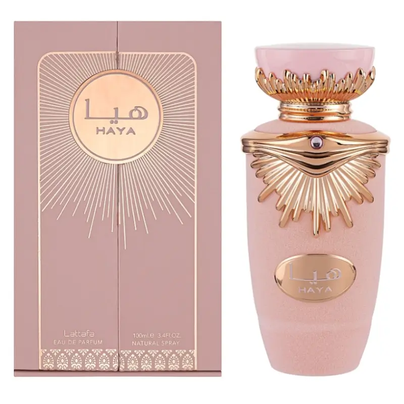 Haya (« modestie ») est une fête pétillante : champagne effervescent, fraise et orange sanguine ouvrent le bal, avant de se fondre dans une gardenia-orchidée crémeuse relevée de vanille. Le tout repose sur un fond chaud châtaignier-ambre, délicieusement cocooning.