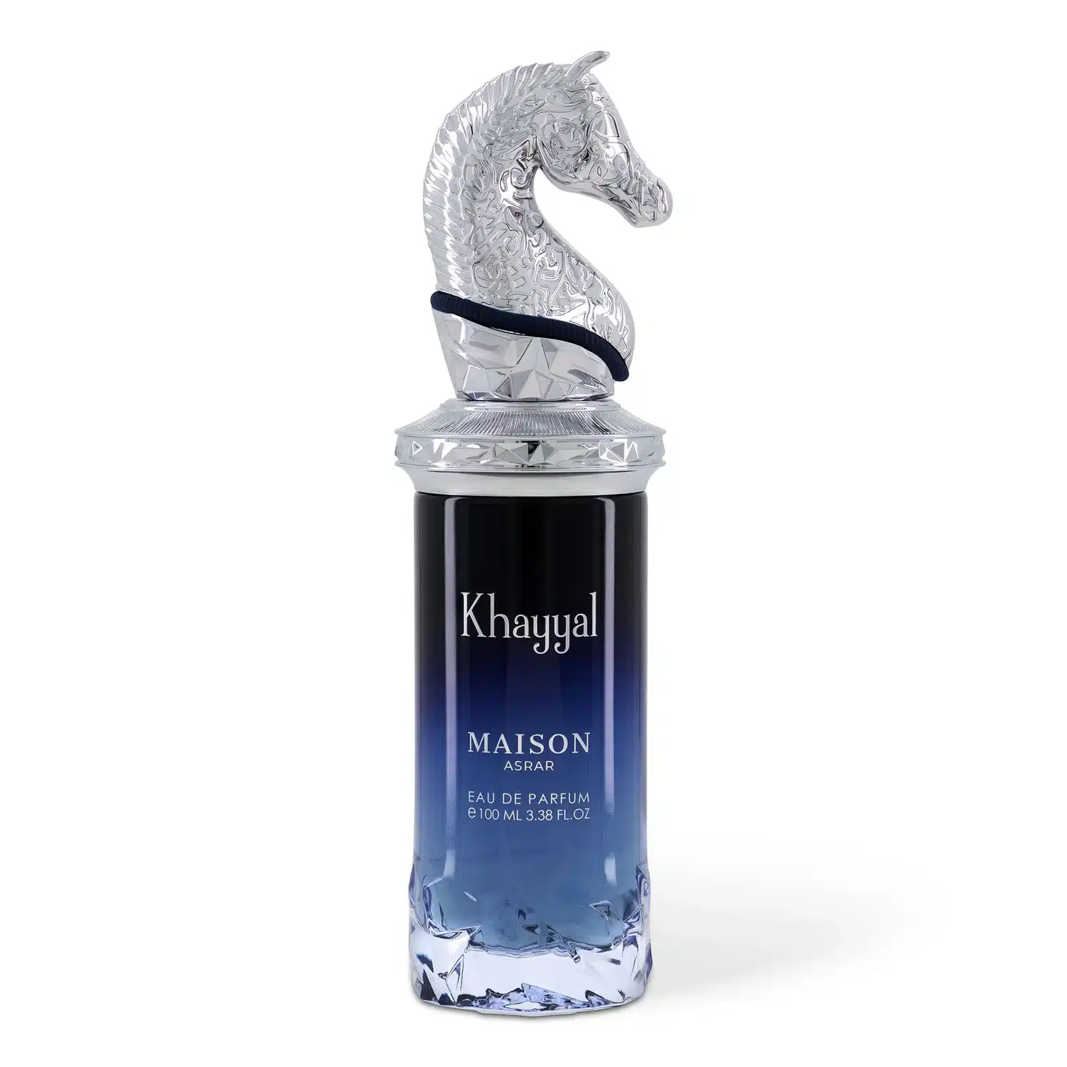 Avec son flacon bleu nuit sculptural, Khayyal (« Imagination ») incarne la liberté et l’élégance contemporaine. Ce parfum unisexe offre un équilibre parfait entre l’énergie des agrumes et la douceur du musc propre.