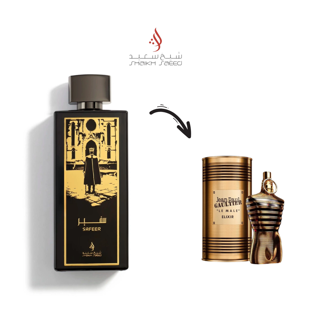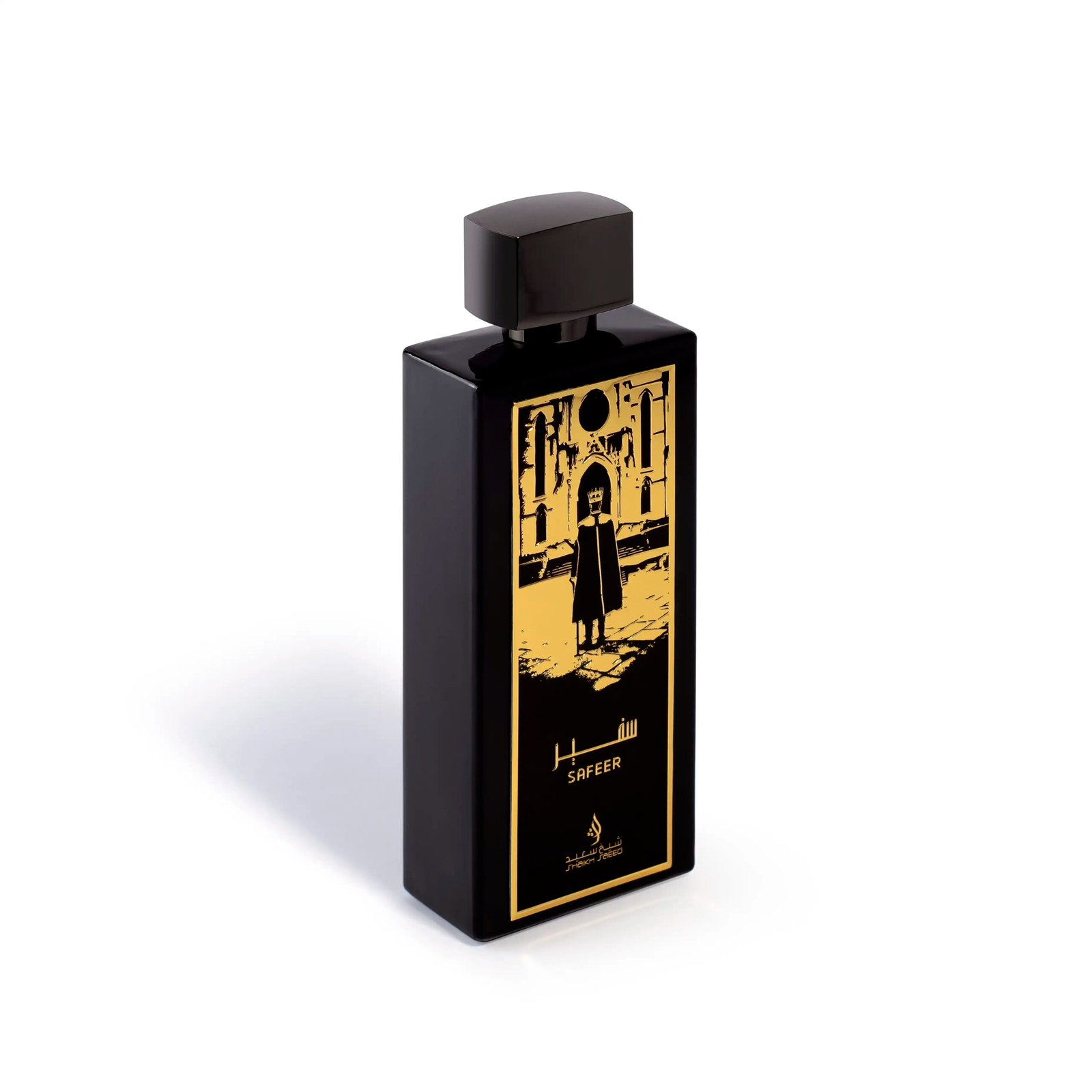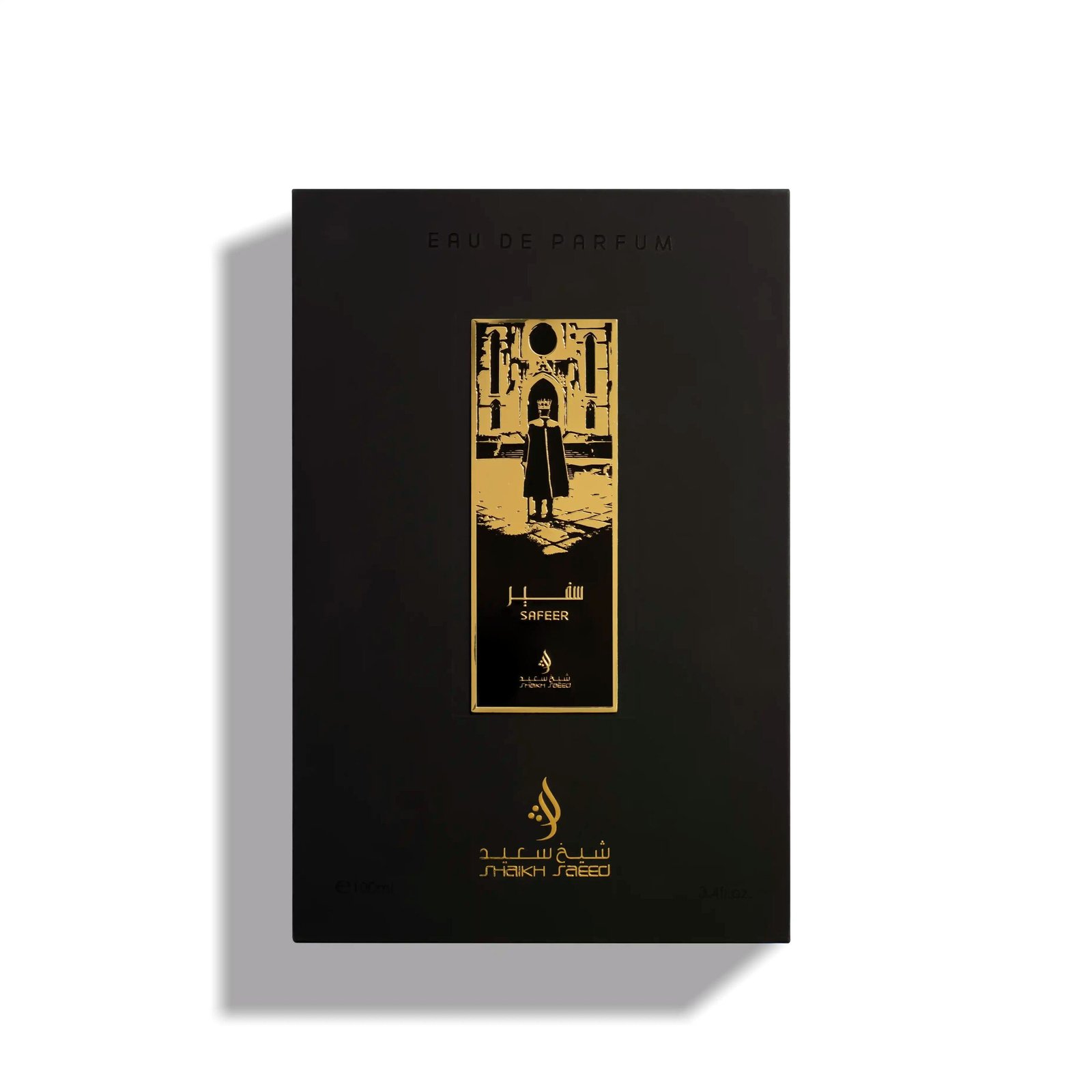Safeer est un parfum masculin qui impose le respect par son équilibre parfait. L’envolée épicée de cardamome et de poire noire saisit l’attention, tandis que le cœur aromatique de lavande et d’absinthe apporte une fraîcheur classique et virile. Le fond de santal, vanille et fève tonka réchauffe l’ensemble pour un sillage séducteur et moderne.